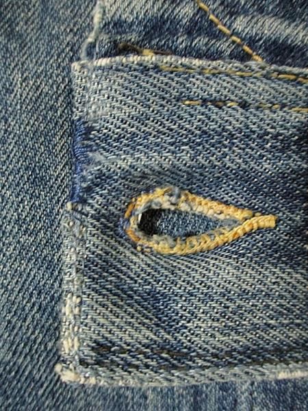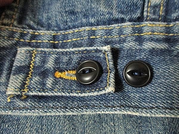 前身頃下に織り傷、タグ欠損、アジャストボタン4個(欠損)が新品ボタンに交換されています。